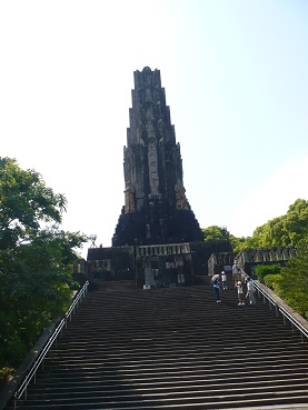 山時鳥、初鰹。宮崎滞在一日目、宮崎では何をさておいても訪れなければならぬ軍国遺構、平和台公園の八紘一宇の塔をきっちり見学する。GHQの命令ですぐさま爆破されていてもおかしくなかったこの塔の来歴は別途調べていただきたいが注目すべきはやはりこの独特の建築様式である。表に「八紘一宇」、裏に「皇紀二千六百年」と、深く刻まれている。曲線をなるべく排し、しかし直線の組み合わせがモダンな切れ味を流行することもなく、強いてあげればロシア・アヴァンギャルドやイタリア未来派、たとえばタトーリンとかそういった様式に近いのかもしれぬが(ファッショやナチス革命で称揚された未来派/ファシズム芸術と、ロシア革命を牽引したロシア・アヴァンギャルド芸術の親和性、類似性についてはイーゴリ・ゴロムシトク著「全体主義芸術」に詳しい)このいかつい石造塔は宮崎の風土に晒されて湿った風雨に少し角が取れて地被類もはびこり、往年のアンコールワットのような蒸した趣きも醸している。戦争終結をしらずそのまま数十年も東南アジアのジャングルで一人、皇軍戦争を続けて、ついに発見されて帰還命令を受理した横井さんとか小野寺さん、といった、戦後復興に浮かれる当時の日本人にしてみれば後ろめたい、不気味極まりない存在に近いのかもしれない。そして、一党独裁の、中心を基点とするファシズムやスターリニズムと違って、中心なき総体としての有り様であった日本軍国主義はまさに言葉の正確な意味において「全体主義」の理想形なのであるとしたら、それを標榜するこの石塔が、安易に未来派やロシア・アヴァンギャルド芸術に似る筈も無いのである。異貌である。としかいいようのない。小生はこれを、日本軍国様式、と名づける。この八紘一宇の塔に近い雰囲気を、小生はこの国の国会議事堂に嗅ぎ付ける。あれも本当に異常な建築である。薄気味悪く、確かな発信源から他を圧する分かりやすい煌びやかさなど皆無ながら、路傍のような洗練の無さがむしろぬぼうと、まさに民衆の底から湧き上がった不気味な化け物の如き草の根の圧制の象徴…なのである。国会議事堂の建設年代などこの際どうでもよい、国会議事堂も八紘一宇の塔も、日本軍国様式建築であるとここに認定する。八紘一宇の塔は過去の遺物ですむかもしれぬが今も政治の表舞台である国会議事堂でさえも軍国様式建築であるという事の意味は、改めて留意した方がよい。ちなみに小生は日本軍国主義下での戦争画の復刻版を収集しているが、それとあわせて、ゴロムシトク氏には、日本軍国主義様式建築の考察も、彼の全体主義芸術論に加えて欲しかった。