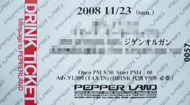 「ジゲンオルガン/ライブ@岡山ペパーランド(2008.11.23)」 2008年12月21日 仏滅 冬至悲雨